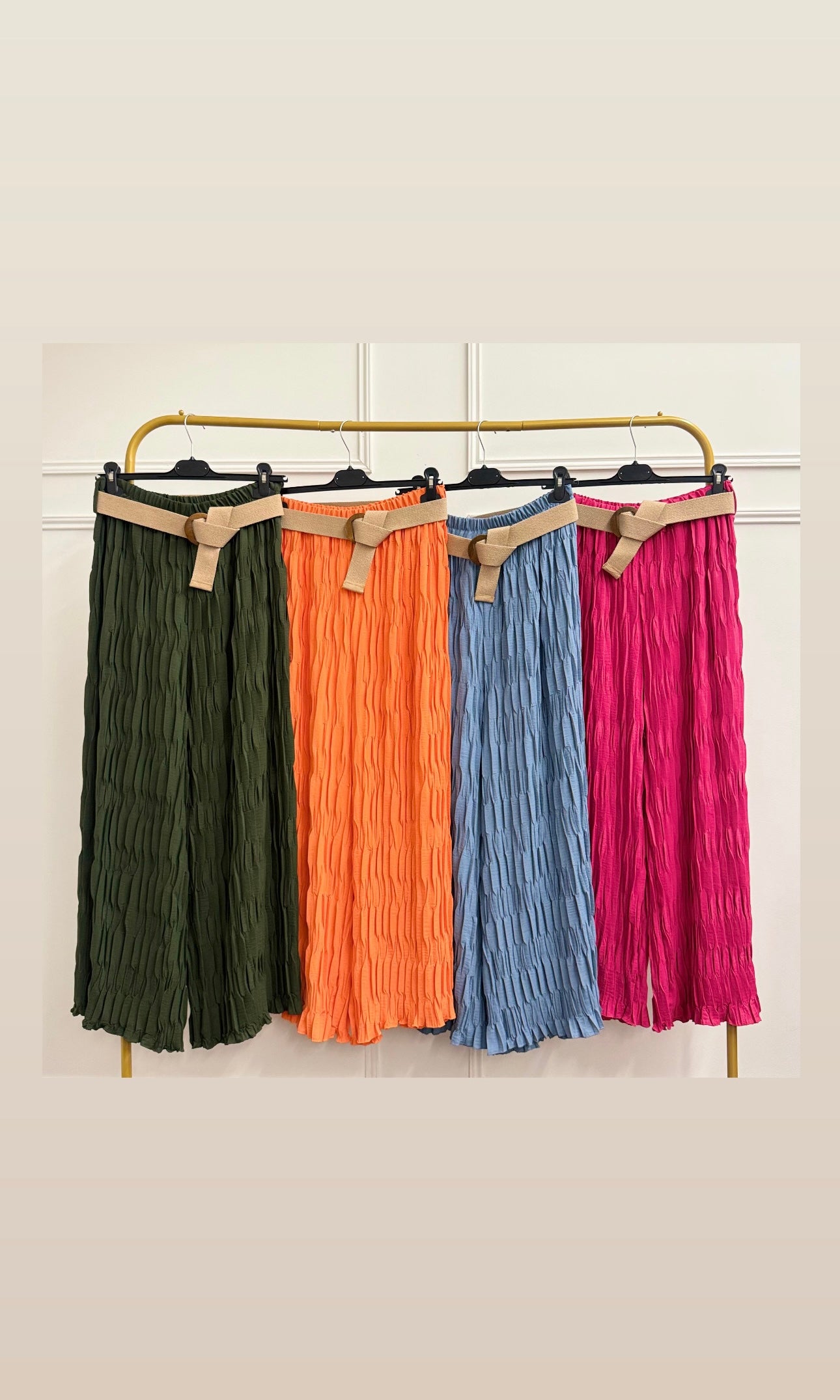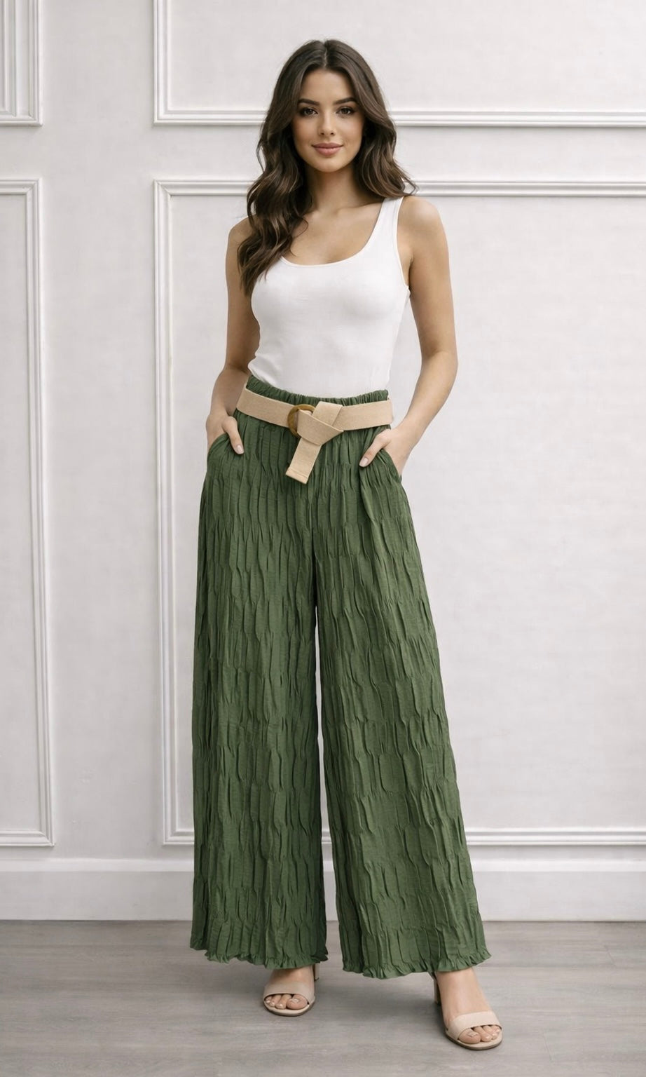 Crinkle pleat elasticated trouser with belt
